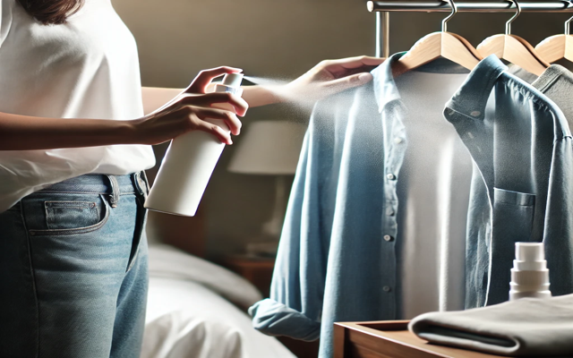 1. 섬유 탈취제를 옷에 골고루 뿌립니다.