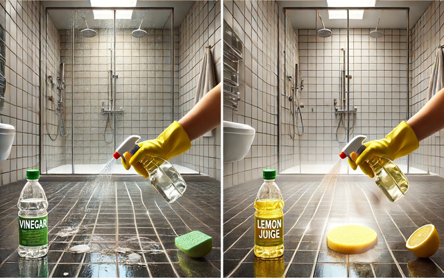 욕실 타일이나 샤워부스에 생긴 미네랄 얼룩은 식초나 레몬즙을 사용하면 쉽게 제거할 수 있어요. 식초나 레몬즙은 약산성이어서 미네랄 성분을 녹여주기 때문에 효과적이죠. 스프레이 병에 식초를 담아 얼룩이 있는 부분에 뿌린 후 몇 분 동안 기다렸다가 부드러운 스펀지로 닦아내면 깨끗해집니다.