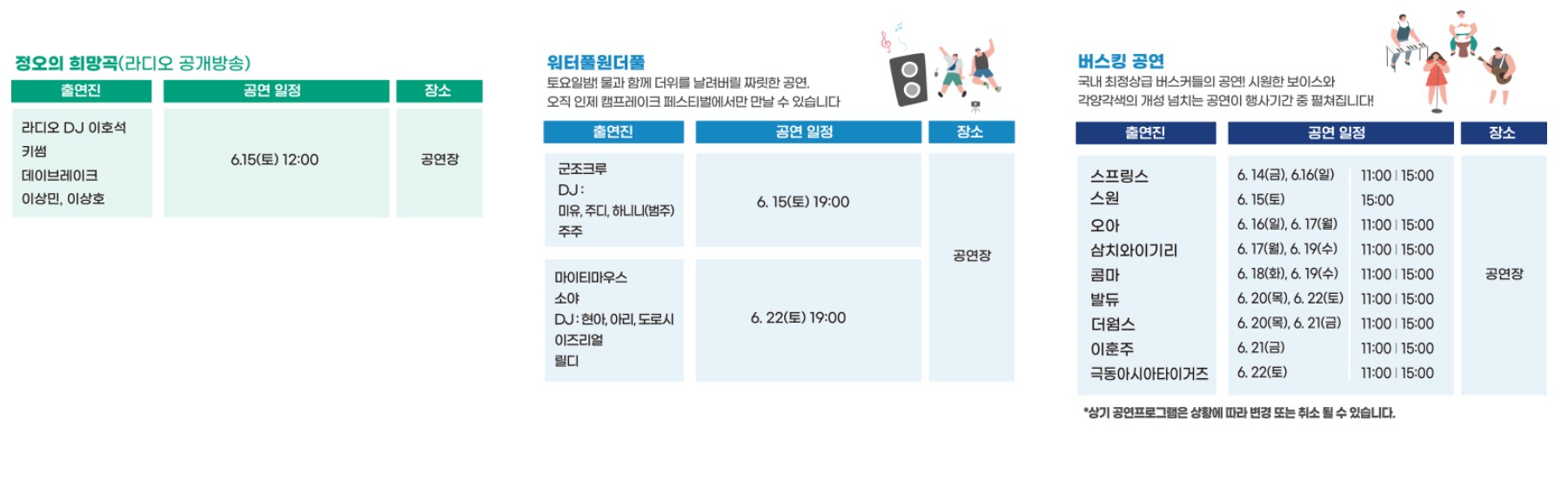몸 들썩 워터풀파티・버스킹 공연: 시원한 물놀이와 함께 즐기는 워터풀파티! 그리고 라이브 버스킹 공연으로 축제 분위기를 한껏 높여보세요.
