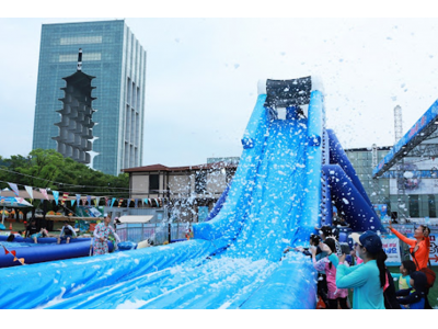 다이내믹 워터슬라이드: 어른, 아이 모두 즐길 수 있는 워터슬라이드는 더위를 한 방에 날려줄 거예요.