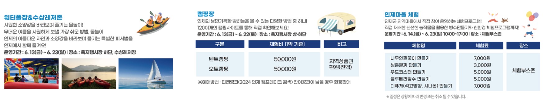 입장료는 무료이며 캠핑존 및 일부 체험 프로그램은 유료로 운영하고 있으니 미리 확인해 보세요