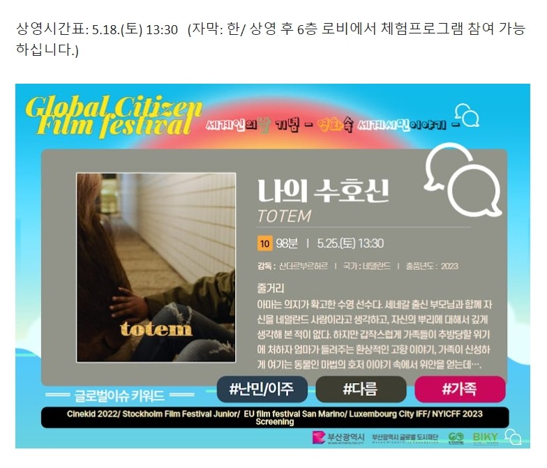주최 주관 : 부산광역시, 법무부/부산글로벌도시재단, 부산출입국·외국인청, (사)문화복지공감, 영화의 전당